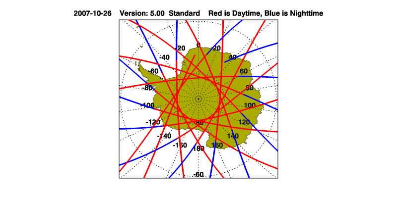 The orbit track locations for the entire Level 1 .hdf file are in black and the orbit track locations corresponding to this page are color coded.