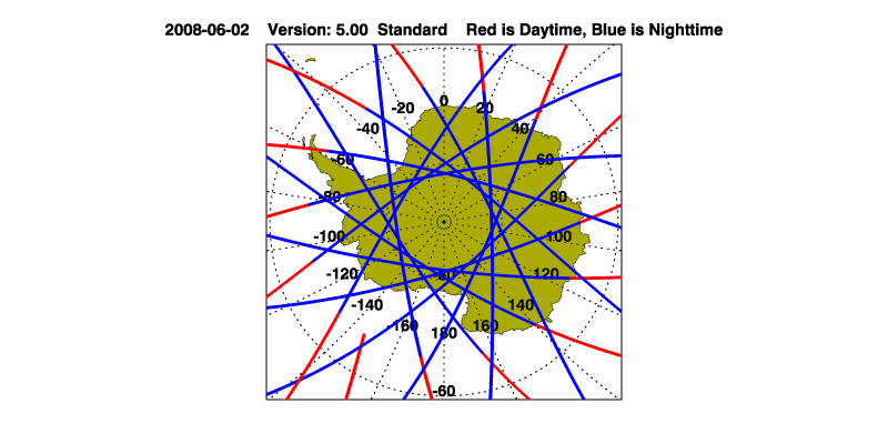 The orbit track locations for the entire Level 1 .hdf file are in black and the orbit track locations corresponding to this page are color coded.