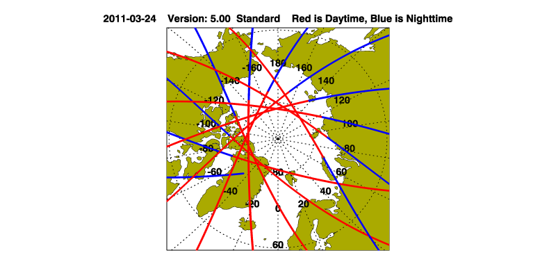 The maps with a shaded background indicate nightime measurements.