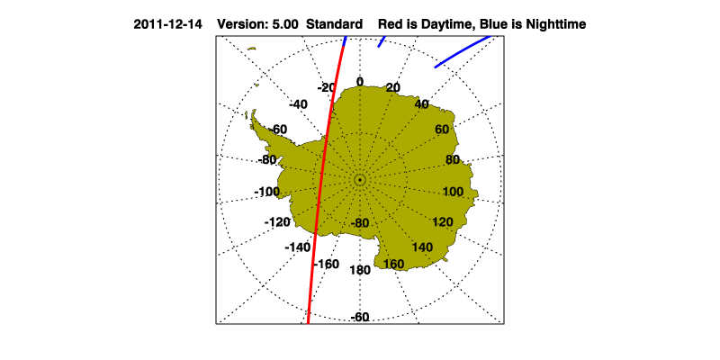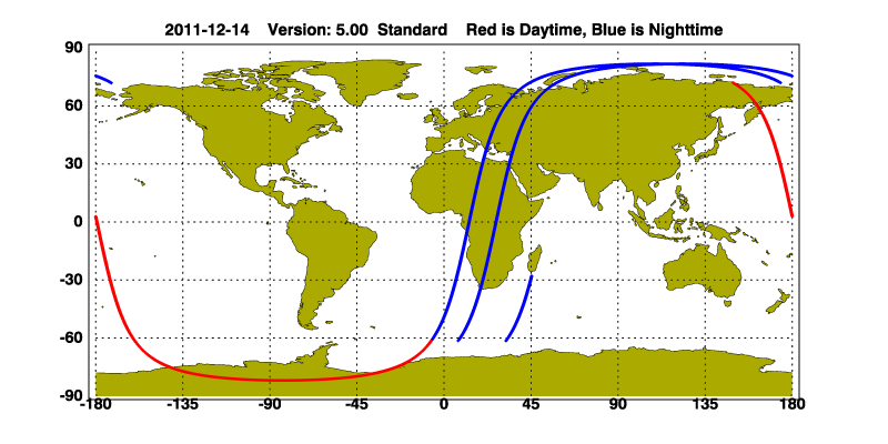 The orbit track locations for the entire Level 1 .hdf file are in black and the orbit track locations corresponding to this page are color coded.