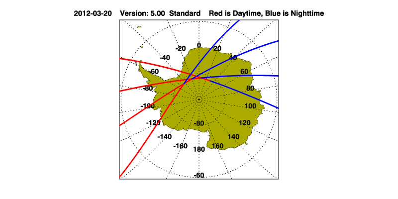 The orbit track locations for the entire Level 1 .hdf file are in black and the orbit track locations corresponding to this page are color coded.
