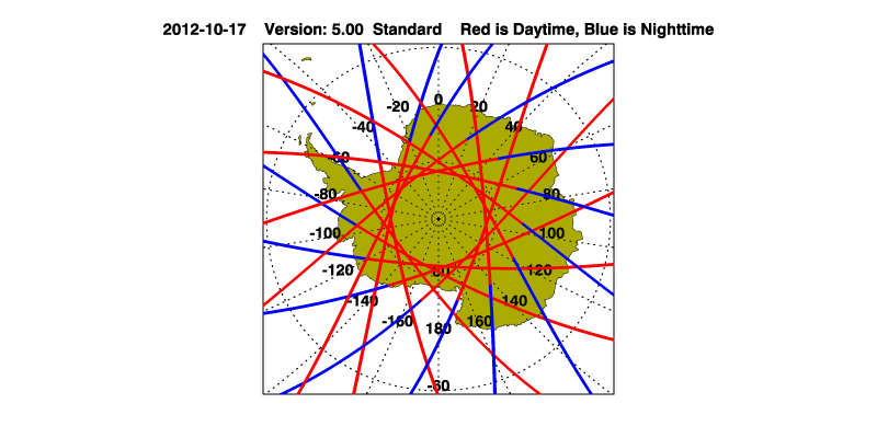The orbit track locations for the entire Level 1 .hdf file are in black and the orbit track locations corresponding to this page are color coded.