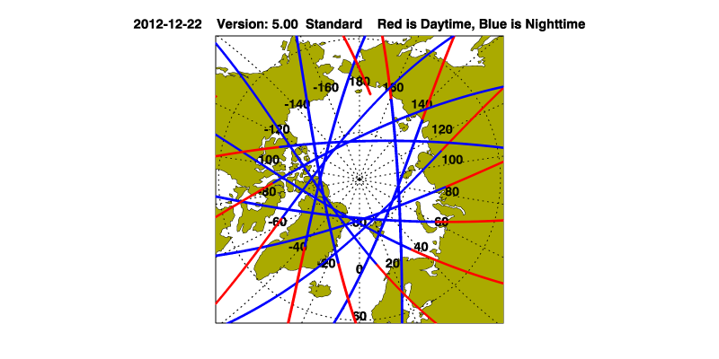 The orbit track locations for the entire Level 1 .hdf file are in black and the orbit track locations corresponding to this page are color coded.