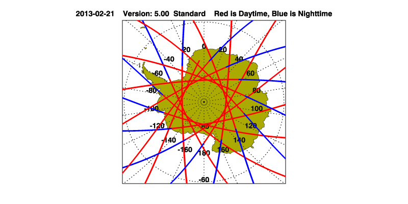 The orbit track locations for the entire Level 1 .hdf file are in black and the orbit track locations corresponding to this page are color coded.