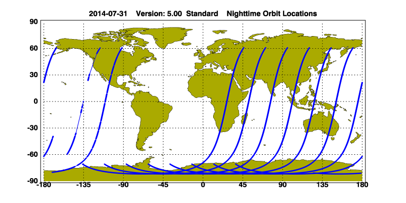 The scaled images on this page are organized by CALIPSO data product day and night orbit granules.