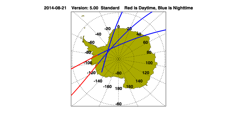 The orbit track locations for the entire Level 1 .hdf file are in black and the orbit track locations corresponding to this page are color coded.
