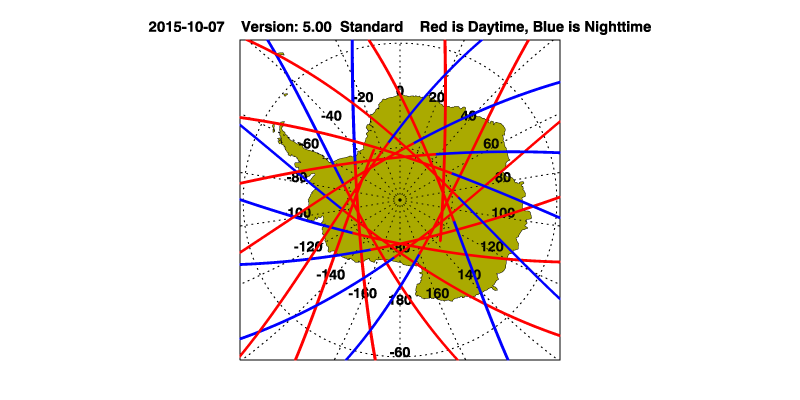 The orbit track locations for the entire Level 1 .hdf file are in black and the orbit track locations corresponding to this page are color coded.