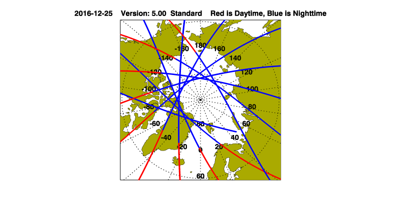 The orbit track locations for the entire Level 1 .hdf file are in black and the orbit track locations corresponding to this page are color coded.