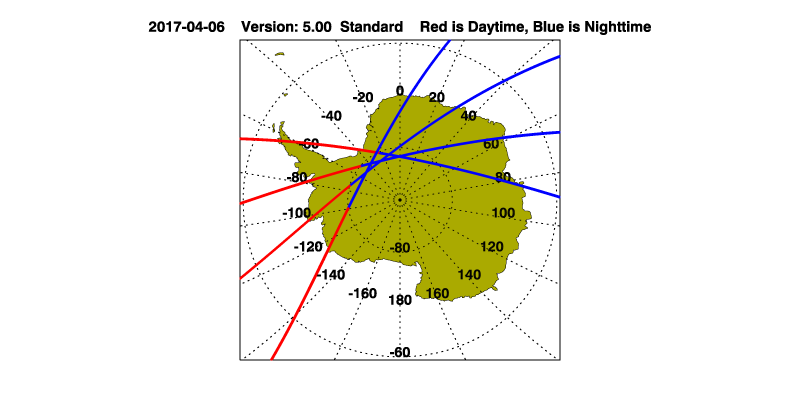 The orbit track locations for the entire Level 1 .hdf file are in black and the orbit track locations corresponding to this page are color coded.