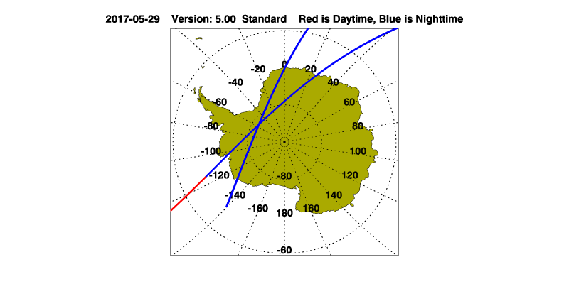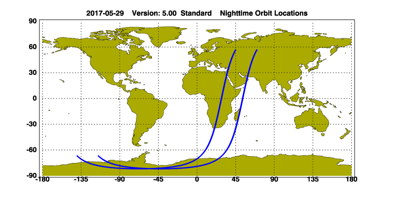 The orbit track locations for the entire Level 1 .hdf file are in black and the orbit track locations corresponding to this page are color coded.