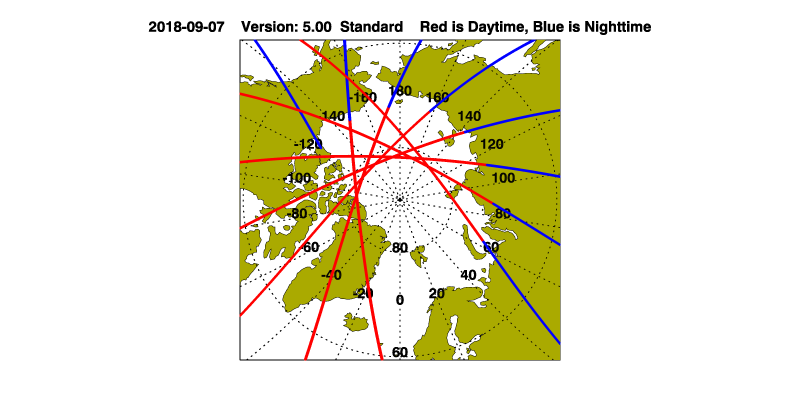 The maps with a shaded background indicate nightime measurements.