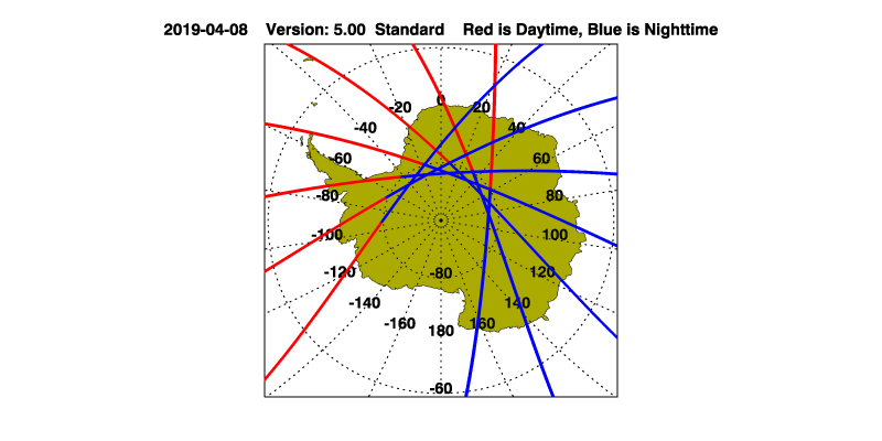 The orbit track locations for the entire Level 1 .hdf file are in black and the orbit track locations corresponding to this page are color coded.