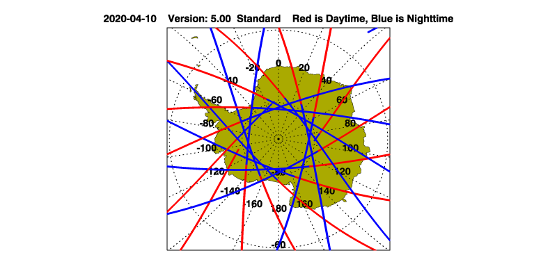 The orbit track locations for the entire Level 1 .hdf file are in black and the orbit track locations corresponding to this page are color coded.