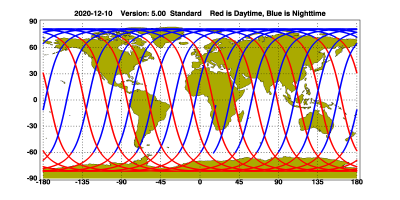 The orbit track locations for the entire Level 1 .hdf file are in black and the orbit track locations corresponding to this page are color coded.