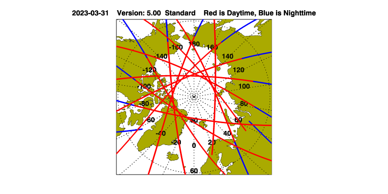 The orbit track locations for the entire Level 1 .hdf file are in black and the orbit track locations corresponding to this page are color coded.